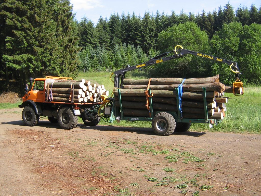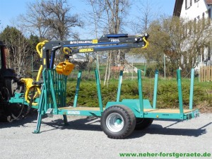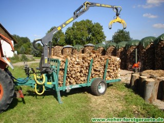 Die Brennholzanhänger Forstner F6 mit Forstkran ist ein als Tieflader konzipierter Forstanhänger, der sich für den universellen Einsatz im Forst eignet. Durch 8 umsteckbare Einsteckrungen mit 10 Rungenführungen (8 seitl. + 2 hinten) sowie dem durchgängigen Holzboden ist das Verladen und Transportieren von unregelmäßig langen/kurzen Holzstämmen, Meerholz, Energieholz und Restholzabschnitten möglich. Weiteres Merkmal dieser Forstanhänger ist die leichte und kompakte Bauweise, wodurch ein niedriger Schwerpunkt sowie eine gute Manövrierbarkeit gewährleistet wird. Mit Auflaufbremse / Rückmatic und Breitreifen ausgestattet, können beide Anhänger auch mit kleineren Traktoren ohne Druckluft bei voller Zuladung bis zu 6,9to betrieben werden.
