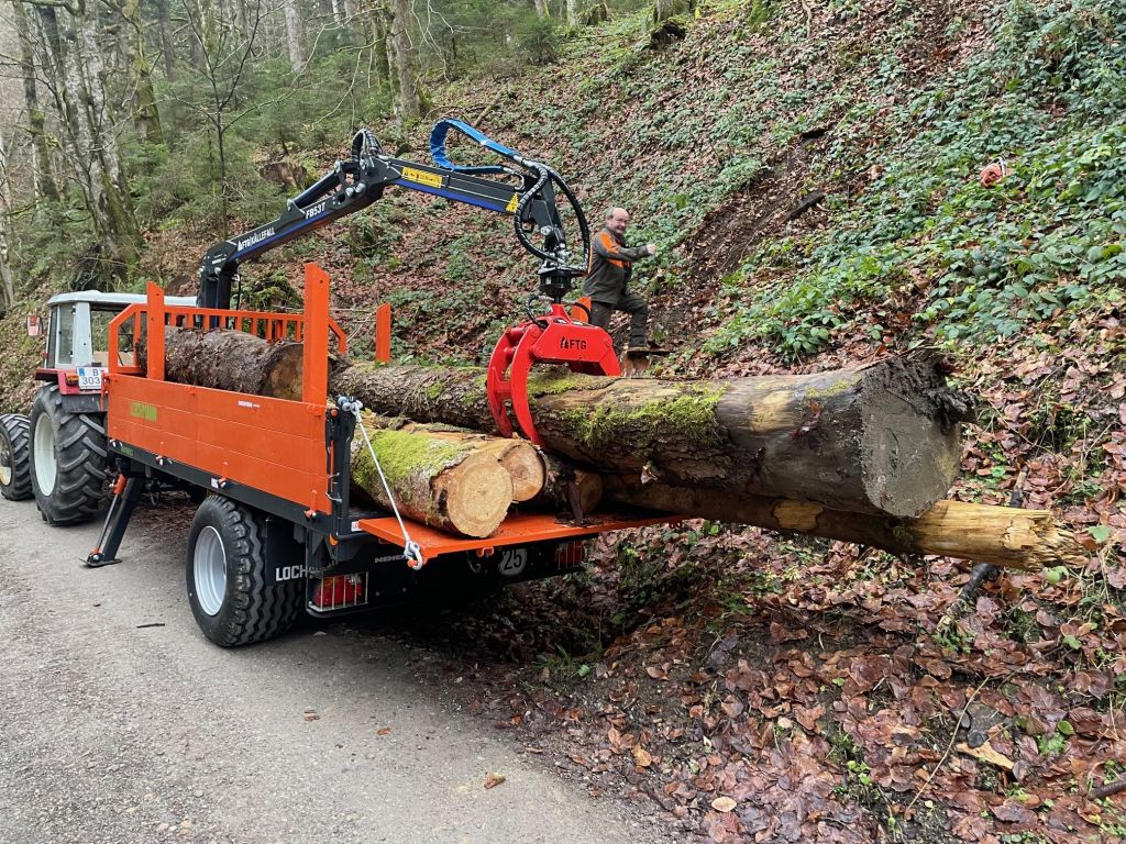 | Lochmann RWFM50 (6to ZGG) mit Källefall FB53T Forstkran, Auflaufbremse, Einsteckrungen in Brücke, Stirngitter |
