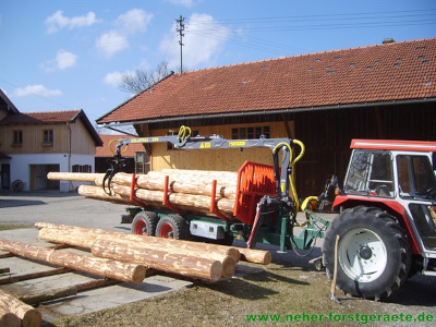 Des Weiteren bietet Neher-Forstgeräte reine Lochmann Dreiseitenkipper mit Forstkran an. Diese finden überwiegend im Brennholz-, Schüttgut- und Energieholztransport, aber auch im kommunalen und bauwirtschaftlichen Bereich Verwendung.